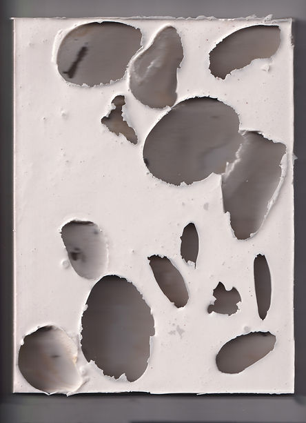 The work is a series of enlarged digital prints made from scanned silkscreen matrices made from liquid silicone. The matrix, or engraved surface, is a sculptural-relief object, which through the printing process defines this act as Engraving Art. The whole process moves between the three-dimensional and two-dimensional space and the idea straddles the line between printmaking and sculpture. This material, captures parts of beaches in Cyprus, thus recording the location of different natural elements, such as rocks, pebbles, shells, and seawood, elements that move and resemble different beaches around the Mediterranean.